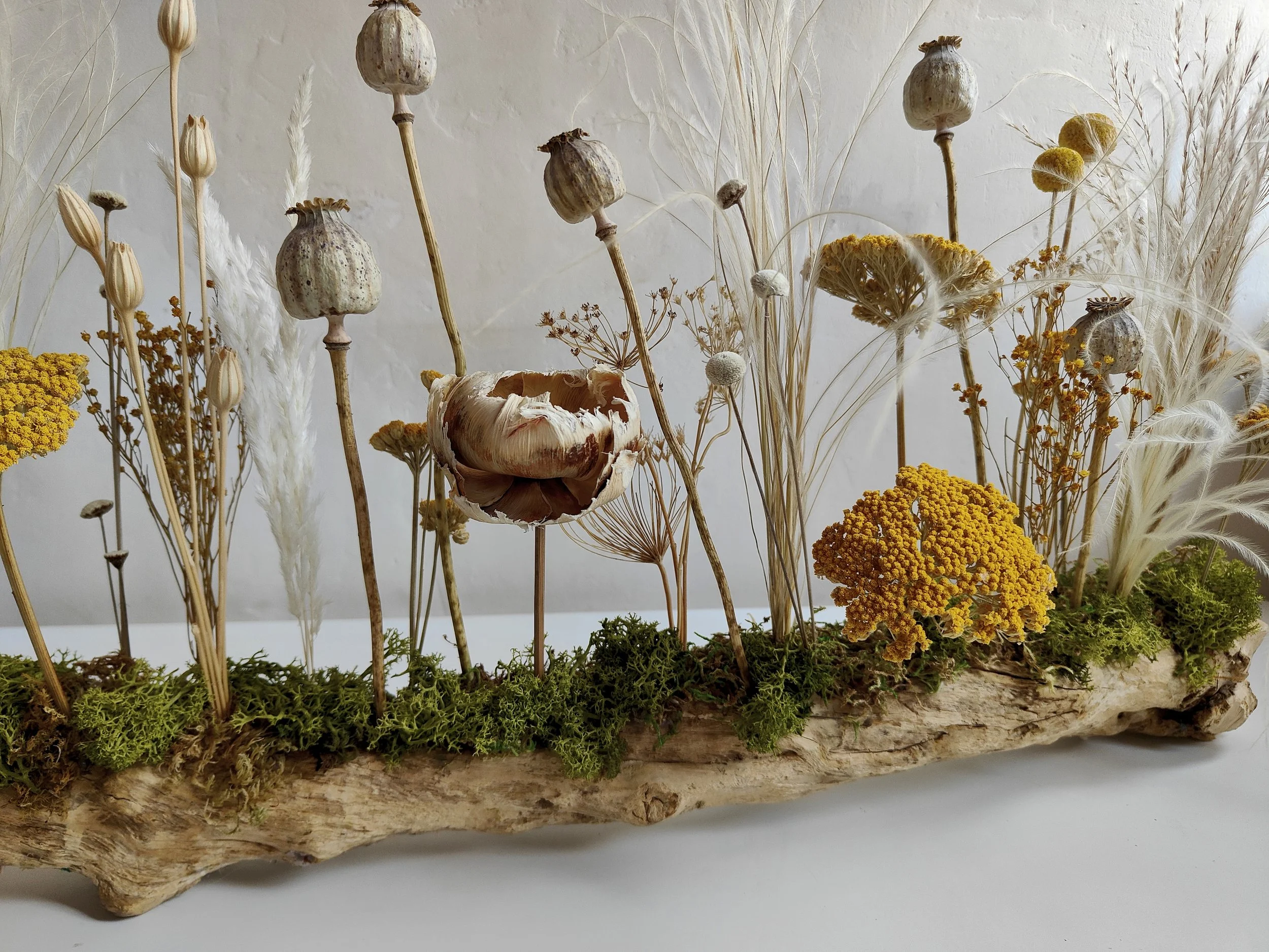Sustainability; there is an overall lower carbon footprint when choosing to use dried and preserved flowers as they require no energy-intensive refrigeration or watering, and there is no need for fast and frequent transportation like with fresh flowers. Some of the flowers I use can be dried from surplus crops or unsold flowers, promoting circularity and reducing waste within the industry. All of my flowers are sourced from UK growers and suppliers.